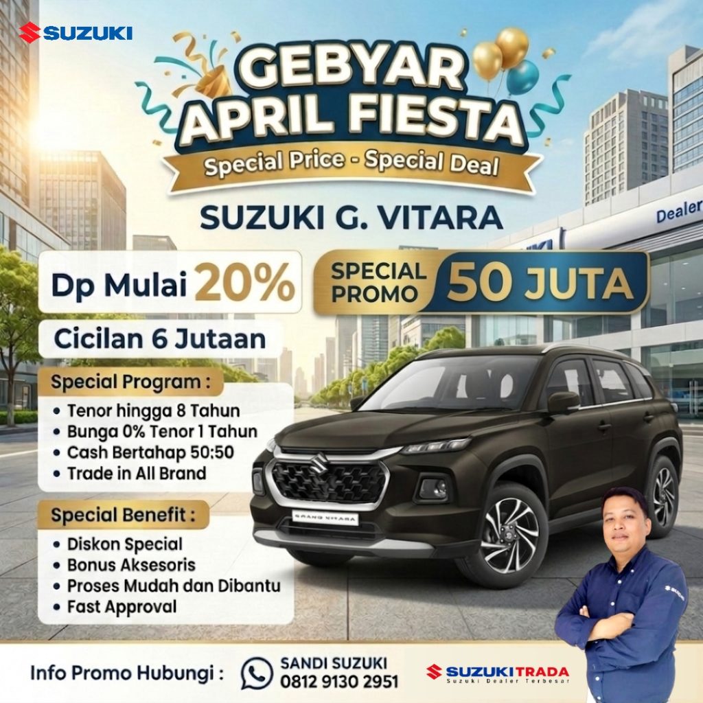 Supaya tetap Instant dan praktis, hubungi Sandi (Sales Resmi Suzuki) untuk mendapatkan info seputar Promo Menarik dan Hadiah Spesial untuk pemesanan kendaraan melalui website ini.